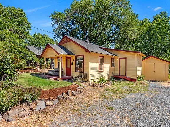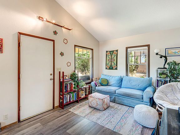 Delightful little cottage just minutes from downtown on a quiet residential street. Efficient use of space; the vaulted ceiling adds an element of spaciousness to the living area and the low maintenance hardwood like flooring adds to the appeal. The home features a sunroom to the back that offers an opportunity for an indoor garden, craft or wax room, or a quiet spot to finish a book. The gas fired stove in the living area provides cozy warmth after a ski day. The detached, concrete floored storage shed is ideal for storing Central Oregon toys. The home comes complete with washer-dryer, refrigerator and range. This home is well insulated and the vinyl windows add energy efficiency. It garnered an energy score of 9! This home captures the essence of old Bend!