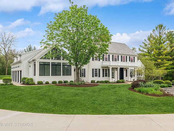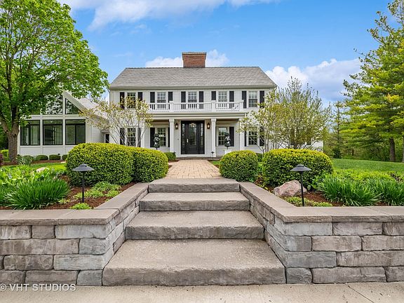 Welcome to Turtle Hill, a renovated 5 bedroom property on almost five acres in beautiful Barrington Hills. This classically designed home exudes the charm of an older home, but with the modern amenities and luxury you expect from a new build. The front porch welcomes you into the main level with custom millwork, three fireplaces, coffered ceilings and wide planked hardwood floors. In the kitchen you will find picture windows looking out onto the property with a double range, Sub Zero refrigerator, ice maker, coffee bar, handmade ceramic backsplash, and top of the line quartz countertops. Your primary suite can also be found on the main floor with a vaulted ceiling bedroom surrounded by windows looking out into the gardens, a Carrera marble bathroom with enormous shower and claw foot tub, plus your own private dressing room with island and marble topped make-up vanity. Also on the main floor is a light-filled laundry room, mudroom with custom built-ins, and a two story sunroom with fireplace that can be enjoyed year round. There are two second floor areas in this home, one with three additional bedrooms and oversized marble bathroom and the other a large bonus space perfect for gym or play space with a private office. The lower level provides another private suite with its own kitchenette and laundry, plus a large family room and it's own entry. Outside you can relax on your large private patio with built-in grill, bar, and fire pit area that looks out onto the lake. The two story clubhouse with storage beneath has the best view above the trees. There is ample space in the 4.5 car garage with radiant floor heating. All systems of the home have been upgraded including a generator, HVAC, high speed internet, Hardie board siding, composite DaVinci roof, security system, and the list goes on. Located in the heart of Barrington Hills, you can easily get to village, award winning schools, shopping, dining, and I-90. If you are looking for a home in the country that you can move into and enjoy, this is it. Property owned by listing broker.