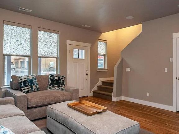 Charming downtown townhouse for rent. The townhouse is walking distance to the riverwalk, historic 25th street, rock climbing gym, restaurants and more! The ground floor: - two car garage with sealed flooring - large media room/den equipped with Bluetooth speakers (throughout the house) - front patio has a great view of the mountains. In addition to the garage, there is unlimited street parking and designated community parking. The second floor: - bright open kitchen with quartz countertops, new refrigerator with ice and water, dishwasher, gas oven and walk-in pantry. - large family room with vaulted ceilings that are equipped with blinds (throughout the house) - laundry closet (washer and dryer included) is just off the dining area. - first bedroom has a great view of mountains with blackout blinds and an adjacent bathroom. The third-floor: - The master bedroom/bathroom has incredible view of the mountains with a custom walk-in closet and blackout blinds. - third bedroom has blackout curtains and an adjacent bathroom. Tenant is responsible for gas, internet and electric. Snow and lawn care included in rent. Pets can be considered for $75 a month. No smoking inside. Twelve-month lease for $2400/ month. First month's rent and $2400 security deposit due at signing. Background and credit check fee apply at application. water, sewar lawn and snow removal included in rent.