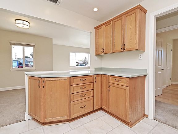 Located at the end of a Court, this Charming Home offers 3 bedrooms and 1 bath with 1038 sq ft of Living Space. With a North/East facing front door, this single story home boasts a newer HVAC system, new gas oven and microwave & new kitchen faucet (2025) new bathroom vanity & Panasonic ceiling fan (2025) and fresh interior paint (2025). There is plenty of space to increase the size of this charming home should one wish to do so. Check out the covered patio which includes relaxing overhead lights and its very own fireplace. This oversized lot comes with plenty of space to roam and is surrounded by other single story homes (private). Don't miss the Wonderful & high producing Tangerine Tree. Just a short walking distance to Downtown Livermore!!