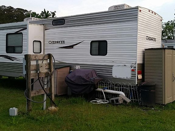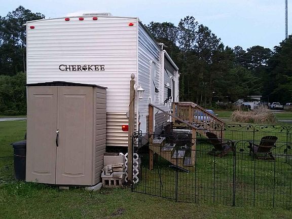 Newer camper set up on lot#3 at Mill Landing. 2 storage units and 2 sets of wooden steps with outside bench. Nice big lot that backs up to a big private lake.. Can be on the beach at OBX in 10min. Qualified person(s) can take over lease 400/month. Asking 25k for the camper or best offer.