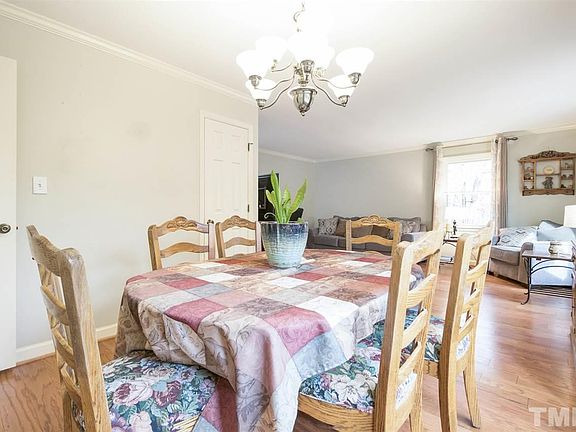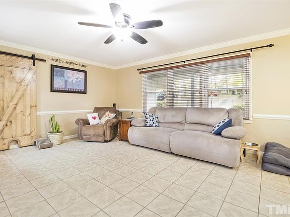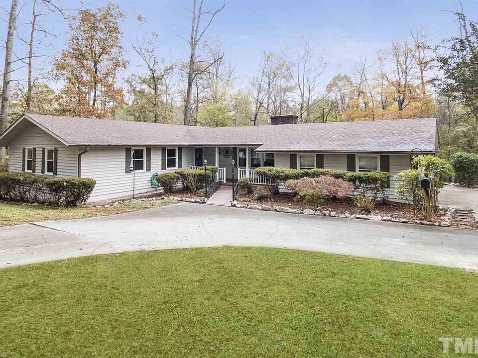 Great home on a beautiful, private lot! This ranch boasts 4 bedrooms, 3 full baths, both living rm w/hardwoods, gas logs fireplace, custom barn door & family rm. Downstairs the walk-out basement offers plenty of space with bedrms/flex rms, a rec room + theater room. Outdoor living boasts a rocking chair front porch, side-entry garage with large parking pad. deck & patio offer great space for outdoor living, great views of the large lot, fenced yard & shed. Close to Downtown Wake Forest shopping & dining!