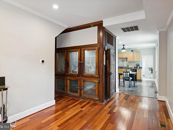 Welcome to this sunny and spacious Baltimore rowhome, ideally situated just two blocks away from the beautiful Patterson Park! This end-unit home offers the wonderful advantage of abundant natural light streaming in through its south and west-facing windows, creating a bright and inviting atmosphere. The living room is wider than neighboring homes on the block, providing ample space for relaxation, hosting, and entertainment. Step inside to discover some of the home’s unique features including Brazilian cherry hardwood floors, brand new carpet just installed last week, and an elegant skylight upstairs. Garage parking ensures convenience and security, while the unfinished basement presents an opportunity for storage, future renovation, and additional living space. One of the unique features of this home is the conversion of a former butcher's refrigerator into a charming bar cabinet, adding a touch of character and history of Baltimore. Nestled in a cozy neighborhood, you'll be able to walk outside and enjoy local favorites such as the Creative Alliance theater, Sally O's restaurant, bakeries, the park, and more. Commuting is a breeze with easy access to the MARC train and the I-95 beltway. This property won’t be on the market for long. Join us for an open house on Sunday, July 9th, from 11 am to 1 pm, or schedule a showing today to see your new home!