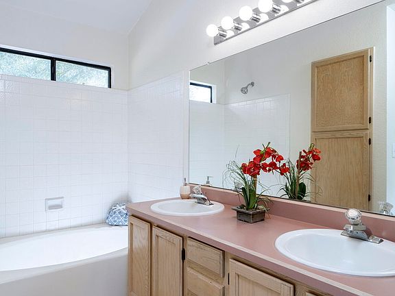 Welcome home to this lovely 3 bed 2 bath home in a peaceful Eastside neighborhood. Fantastic location on spacious corner lot, close to shops and restaurants yet has a real neighborhood feel. This well-maintained home will not disappoint! Master bedroom with large en suite bathroom, garden tub, and huge walk-in closet. Split bedroom floor plan with two additional and well-sized rooms with their own full bath. Guest bedroom #2 has a built-in murphy bed with desk and makes a great office. The kitchen is well equipped and open to a spacious living/dining area with high ceilings and ample light, the perfect size for entertaining. Enjoy the privacy of your private walled backyard with mountain views from the shaded patio. Large 2-car garage has plenty of space for projects. This one won't last!!
