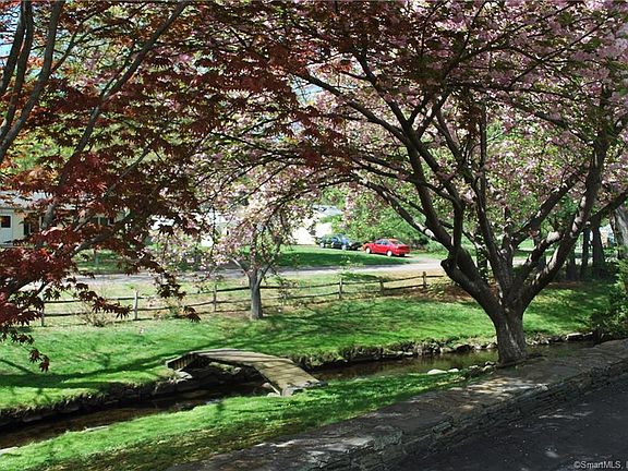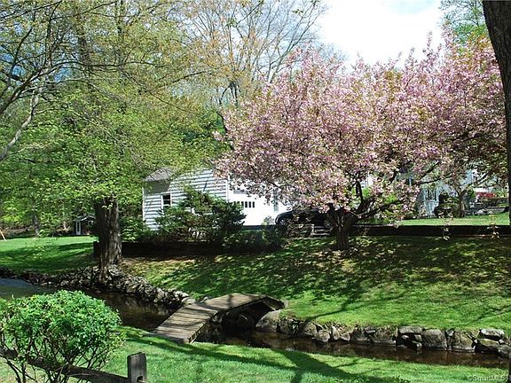 Charming, inviting ranch style home on 1.1 acre picturesque lot. A perfect setting with mature trees full of spring color. Stone masonry and wood sided home welcomes family and friends. A large inviting and sun filled living-room with a classic wood burning fireplace that is flanked by built-in book cases and warm hardwood floors. The formal dinning room is framed by an arched entry and has built-ins too. The large open kitchen with plenty of cabinets and fully applianced, is large enough to handle any family gathering. The kitchen gives access to the patio area and a breezeway/mudroom attached to the garage. There are three good sized bedrooms all with hardwood flooring and a classic full bath on the main level. The lower level has a quintessential rec room with pine paneling and a great 1950's style wet bar - plenty of room for entertaining or for children to enjoy playing. Also there is a workshop room and laundry room with full bath located here. It's the yard that will catch your attention first A level yard with a brook running down one side, 3 bridges to cross over and draping mature trees. The open lawn area is great for outdoor enjoyment, relaxing or gardening.