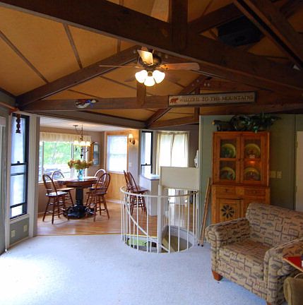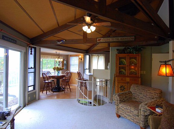 WOW, Long Range Layered Views from this well-kept round house above the Snowtube Trails and Zip Line at Hawksnest. Offering two bedrooms and 2 full bathrooms and around 1000 sqft, this home provides a great place to relax or to get away, without breaking the bank. The exterior has been redone and the interior is in good condition. The Dancing Bear (as it is affectionately known) comes furnished and ready to go with excellent rental potential!