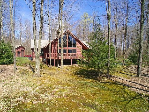 This Western Red Cedar Beamed Home is what dreams are made of! This gem is tucked away on 14.5 wooded acres. Custom Finishes inside and out with many commissioned details. Home offers loft, heated glass sunroom and lower level 24x24 game room. It also has an over-sized 4 bay garage.Home is surrounded by woods to be enjoyed from the large open front porch and glass enclosed rear porch which includes a wood burning wood stove.
