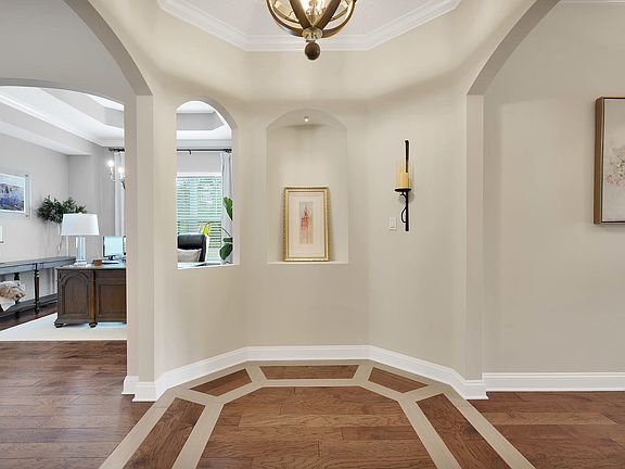 Large corner lot in THE CROSSINGS at TWENTY MILE! This home boasts over $20K in designer upgrades. Nothing needs to be done to this beautiful home - JUST MOVE IN!!! Freshly painted, hardwood floors, arches, crown molding, art niche with art lighting, smooth walls, high ceilings, screened porch, covered front porch, water softener, gutters and over $9k in lighting! You won't want to miss the beautiful kitchen with VIKING refrigerator and ASKO dishwasher, carrara marble backsplash, and soft close cabinets. Trey ceiling in family and master. Flex space can be used as dining room or office! Shows like a model!Preferred lender Fiber.Mortgage will cover closing costs for qualified buyers. Bedroom drapes, office and dining room drapes do not convey.