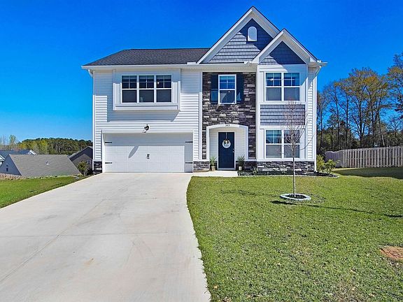 Stunning home in Brookstone with 4 beds, 2.5 baths, over 2300 sf and situated on a large lot! This home boasts a welcoming entrance with an office sitting/room. The family room is open to the kitchen and dining area with luxury engineered hardwood flooring and a gas fireplace. The kitchen features new stainless steel appliances- a gas stove, an island/bar, granite counters and a pantry. The 2nd floor primary suite is over the top and feels like an escape from the rest of the family! It includes an additional sitting area (perfect of an in-home office space, exercise area or area for relaxation! Spacious primary en suite with garden tub, double granite vanities, separate shower and soaking tub plus two generous walk-in closets. Also, located on the second level there are 3 additional bedrooms with large closets that share the hall bath. This lot is beautifully landscaped complete with a 4 zone irrigation system, landscape lighting and a patio. Energy efficient with tankless water heater plus wifi/phone control for smart switches/lights, garage opener, thermostats and security system. The home is almost brand new and move in ready! Community has two playgrounds and a walking trail. Zoned for award winning Lexington District 1 schools.