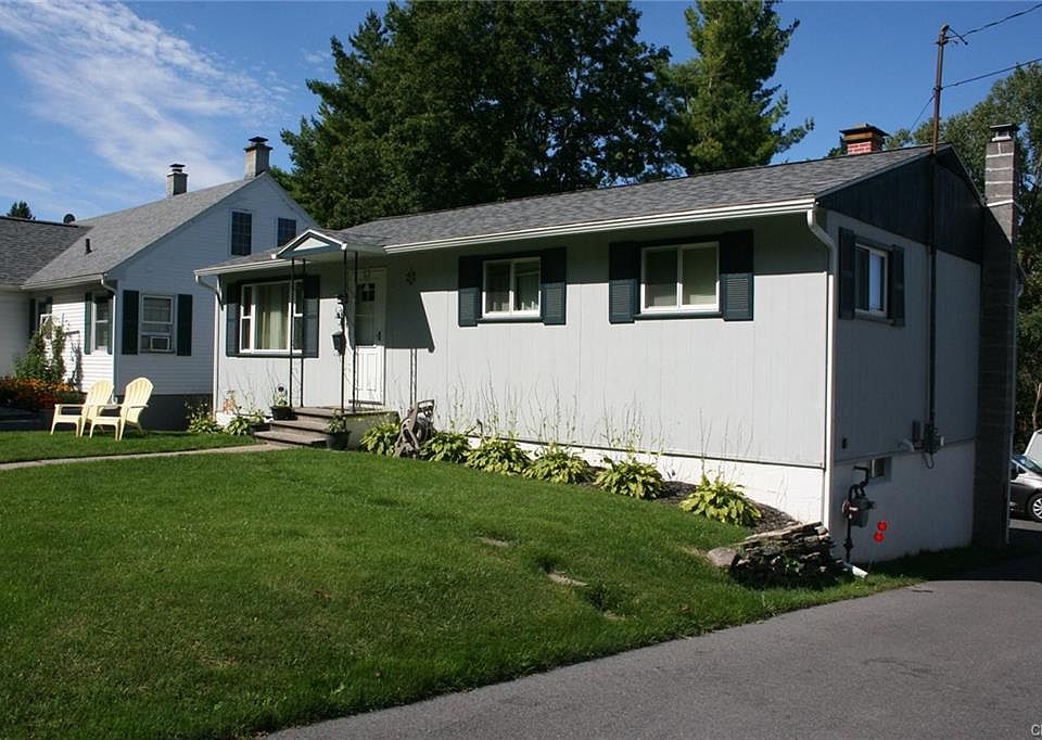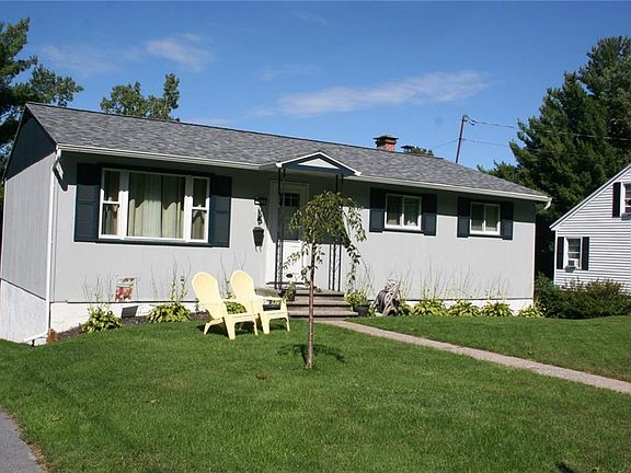 Enjoy this 2+ bedroom with loads of improvements done recently. New furnace ,HW heater, driveway paved, roof, additional land in rear of property bought,(40 ft) ,shed, living room & hallway carpet, stove, remodeled full bath with ceramic tile, windows, front door, electric panel box, and some new gutters. The basement could be used as a 3rd bed room or finished family room with a wood stove for additional heat is 392 ft. of square footage. Playset in back yard included.Cute, cute!!!!