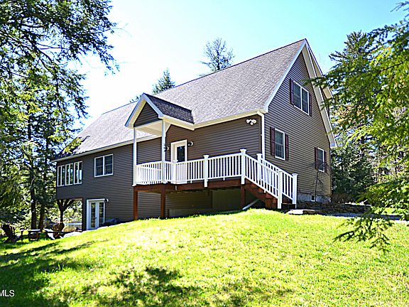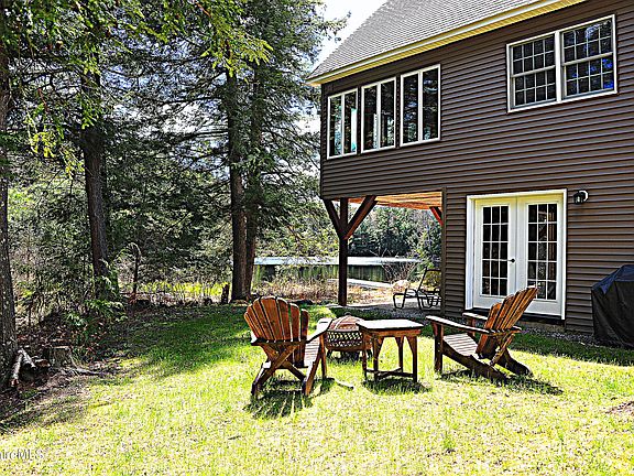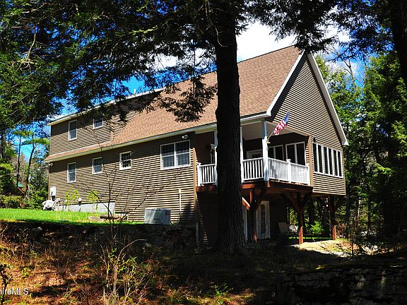 Welcome to Trail Circle on Golden Fawn Pond. In near new condition and built to high energy efficiency standards. The open concept great room opens onto a sunroom and covered deck – both with water views. First floor primary suite, two bedrooms and bath on the upper level. Hardwood floors and native pine ceilings throughout. The semi-finished lower level - with room for ping pong and an entertainment room, has French doors opening onto a covered patio and a walkway to the dock. Not a lot of neighbors - one of the 4 homes on Golden Fawn. Built to the stretch energy code, energy saving features include a high efficiency furnace, on demand hot water heater, central air conditioning and a backup generator on standby