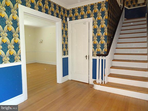Lovely Homeland property-three stories-5 bedrooms- two in the upper level, three on the second levle-2 beautifully remodeled baths plus powder room on the first floor-the master bedroom offers a remodeled bath with a splendid tile shower and there is a fireplace as well. Gorgeous wood floors throughout-two wood burning fireplaces- replaced windows-some interior plantation shutters-welcoming sun room on the first floor off of the living room- the dining room has great space for entertaining-the kitchen offers stainless appliances- a large eating area and tons of cabinet and counter space-as you enter on to the trex back deck from the kitchen you immediately fall in love with the yard. It's green, it's level and you can have so much fun out there. The detached garage is just off of the alley. Wallpaper in foyer and kitchen to be removed and painted