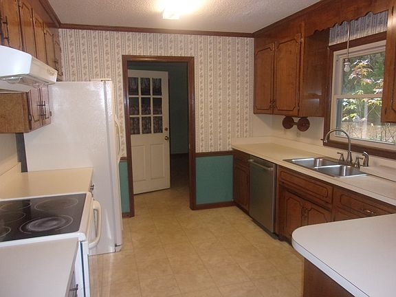 Well maintained home, 3 BR, 2 1/2 baths, front porch, rear deck, and exterior workshop workshop. Has double enclosed carport with paved drive. Quiet street with little traffic. Move in condition with appliances, refrigerator, range, and dishwasher., Large utility room with half bath and a soaker sink. Wood burning fireplace and vinyl windows.