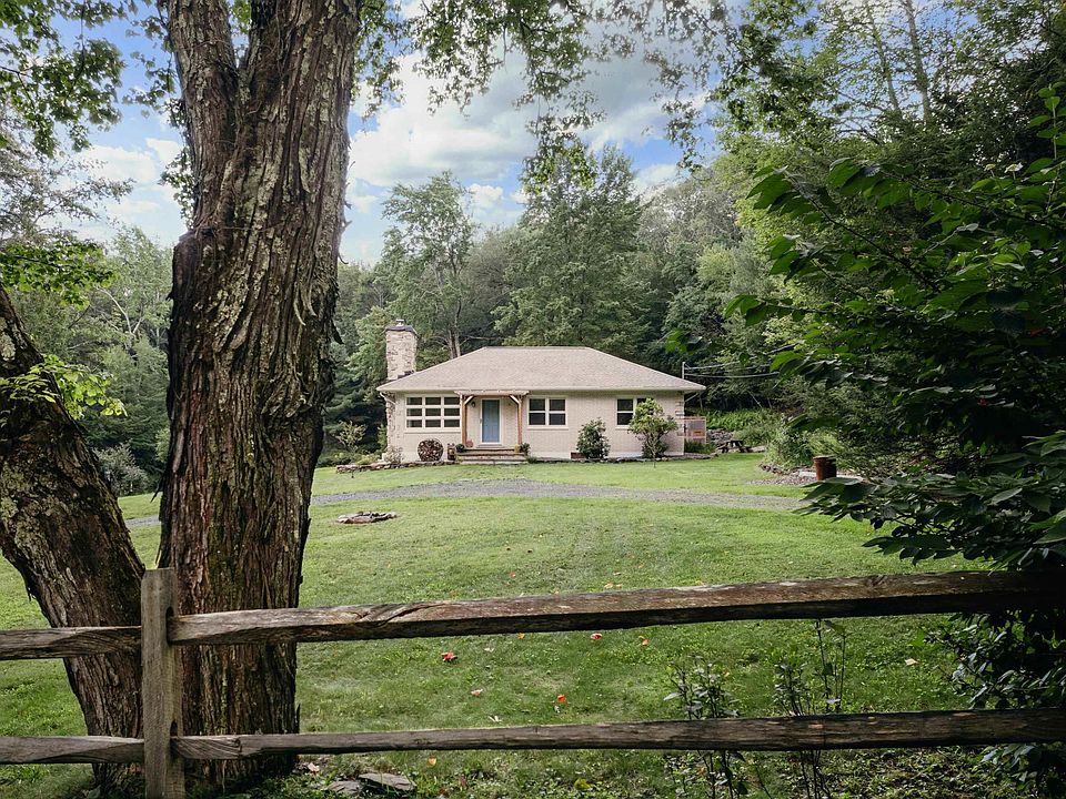 This charming mid-century ranch home sits on 3.6 acres of lush woodland that includes a tranquil spring-fed pond setting the scene for serene mornings and picturesque evenings in one of Kerhonkson's most peaceful areas! Enter to discover a bright living area with unique windows that invite the beauty of the outdoors in. On chilly evenings, cozy up to the warmth and ambience of the wood stove. The living room flows into the efficient kitchen which includes new appliances and leads into the new dining room addition with even more windows offering lovely views of the pond and the surrounding forest. Sliding glass doors open onto a brand new deck, perfect for al fresco dining and entertaining under the canopy of stars. The main level offers three cozy bedrooms and a large, updated bathroom. Downstairs you’ll find an additional 750 sq ft finished, walk-out basement with an ample recreation room ready to be tailored to your needs – be it a media room, gym, playroom, or studio space while a distinctive stone room provides a great backdrop for a workshop or a home office. Completing the lower level is a convenient half bath, a bonus room for storage, and a spacious laundry area with direct access to the yard. Outside, the backyard is surrounded by idyllic woods and has a large open area for outdoor fun and gardening. A chicken coop is ready for its next residents and a shed provides extra storage for tools and equipment and has electricity. The pond, adorned with lush vegetation and teeming with fish, stands as the crown jewel of the parcel’s natural splendor, features a small dock, and, at 16’ deep, is great for swimming! Improvements include new dining room addition, deck, roof, kitchen appliances, plumbing, updated bathroom, water heater, pressure tank, water filters, and French drain, to name a few. Ideally situated in Kerhonkson near the foothills of the Sundown Wild Forest, nature enthusiasts will relish being just a few minutes from the Vernooy Falls trailhead and a short 15-minute drive to popular Minnewaska State Park. Embrace all the area has to offer with nearby farm markets and farm-to-table spots in both Kerhonkson and Accord. Vibrant towns like Ellenville, Kingston, High Falls, and New Paltz are between 20-40 mins away. And, all just under 2 hours to the GWB in NYC.
