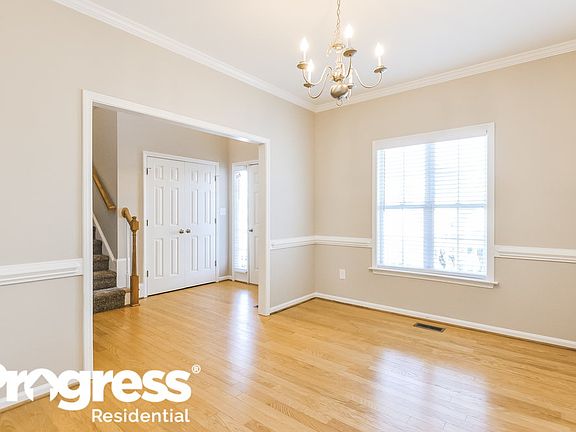 Have a busy schedule? Click the "Show Yourself In" button on this home's RentProgress. This recently renovated rental home in Garner, NC has four bedrooms and two-and-a-half bathrooms. The main living room has plenty of bright windows, a fireplace, and soft carpeting. In the huge eat-in kitchen, you'll find stainless steel appliances and plenty of cabinet space. The house also has a formal dining room with a chair rail, crown molding, and an overhead light fixture. Upstairs, the master bathroom includes dual sinks and a separate shower and bathtub. A wooden deck in the backyard opens up to a forest view. Call for a showing of this home today. Utilities must be transferred into the resident's name. Note: The listed amenities may not be accurate. Please consult with a Progress Residential leasing agent to confirm the property will meet your individual needs.