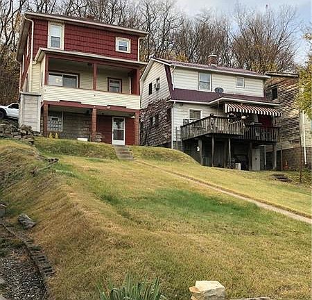 Well Maintained home with great view! This 3 Bed 1 bath home is a great place to start! Living Room has a large bay window, dining room features built-ins with sliding glass doors leading to closed balcony overlooking the town and river. Kitchen is equipped with Stove, dishwasher and refrigerator. Nice size bedrooms. Outside porch and balcony have blinds for privacy and shade. Large back yard with walk-in to basement and shed.