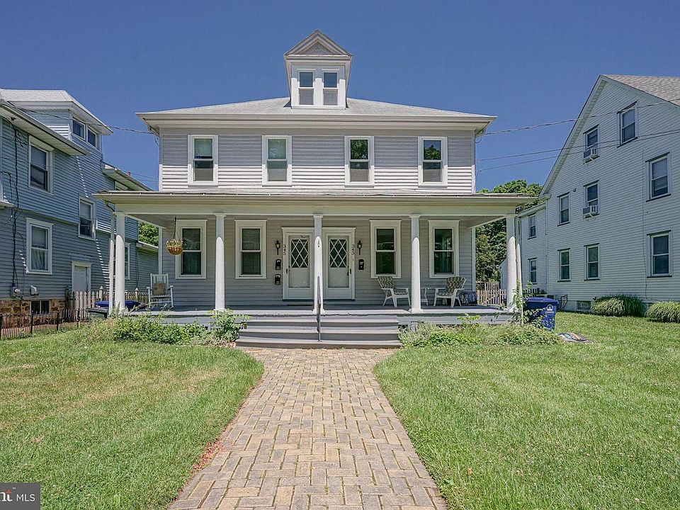 Nestled in the heart of Moorestown sits this lovely updated home with so much to offer. The beautiful front porch greets you and invites you to sit a while and take in the scenic views of the park across the street. The spacious living room and dining room boast hardwood floors and you will be delighted by the updated kitchen with gas cooking and dishwasher. The family room is off the kitchen for additional room to hang out. A full updated bathroom complete the first floor. The second floor consists of 3 nice sized bedrooms an updated full bath and lead you to the finished attic which is ideal for a 4th bedroom, office or playroom. The basement is great for storage and is home to the newer washer and dryer. Outside is the enormous shared back yard with plenty of room for summer fun.