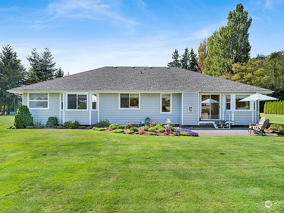 An acre of possibilities! The charming residence boasts a well-designed single-level layout, including both living & family rms for ultimate comfort. The Gathering room, at the rear of the home, includes a gas fireplace & spacious kitchen w/central island. Two dining spaces, in both living rm & gathering rms. The primary suite is spacious, featuring a 5 piece en suite w/jetted tub, bay window & 2 closets (1 is walk in.) The lg 3 bay shop & 2 car garage cater to your storage needs, while an underground sprinkler system & garden space cater to your green thumb. Appreciate the luxury of a private road & shared well, meticulous maintenance, all adding to the exclusivity of this property.