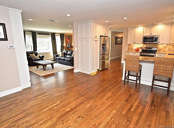 No expense was spared on this 4 bedroom, 2 bath remodeled home. The new windows and French doors provide tons of natural light throughout the home. The interior features of the home are stunning, including all wood floors and a gorgeous finished basement! The focal point of the living room is the brick-faced fireplace with built-in shelving and cabinets. The gorgeous kitchen, perfect for any budding chef, features an abundance of new white shaker cabinets, beautiful granite counter tops, tile back splash, copper sink, and new stainless steel appliances. The large master bedroom has a walk-in closet and full bath. Both bathrooms have been beautifully appointed with new vanities, fixtures, and toilets. There is a large laundry room off the back of the house with tons of cabinet space and storage that leads out to the flat, spacious yard that backs up to the stocked Wepawaug River. A short distance to Boston Post Road's shopping, easy access to the 15 and 95 freeways, and nightly entertainment, makes for the perfect location in the highly sought after Orange School District. NOT IN A FLOOD ZONE - see addendum "FEMA DETERMINATION LETTER"."