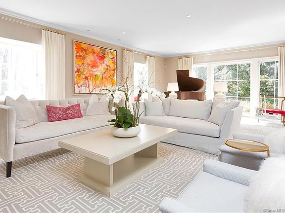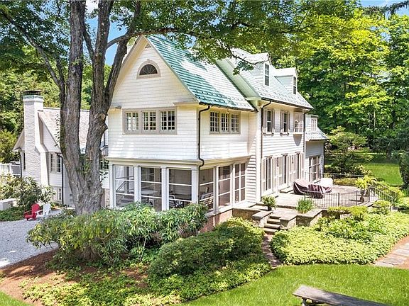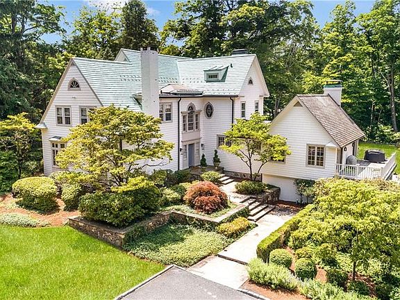 Chic and modern, this classic 4 acre estate has been totally re-imagined for today's lifestyle. A masterful new renovation offers luxurious living at it's finest. Gorgeous formal rooms, stunning barrel ceilinged great room, state of the art chef's kitchen, and all marble baths are just some of the features of this beautiful home. With 7 bedrooms and 6 full baths that include the 2 bedroom guest cottage, there is room for all. Just 3 minutes to town, this sophisticated home offers in town living with exceptional privacy and unparalleled park like property. The main house includes over 8200 sf on 4 levels and the guest cottage adds 1150 SF as well as a separate address with VOIP wiring for a home office. The estate is sited on two 2 acre parcels surrounded by picturesque stone walls, expansive lawns, majestic trees and charming pond. Opportunities abound for further enhancements of recreational space or enlarged guest/pool house or a tennis court. Two pool sites with extensive plans available. See Special Features in Documents. Guest Cottage assessment is $712.530 and taxes are $12,942.40