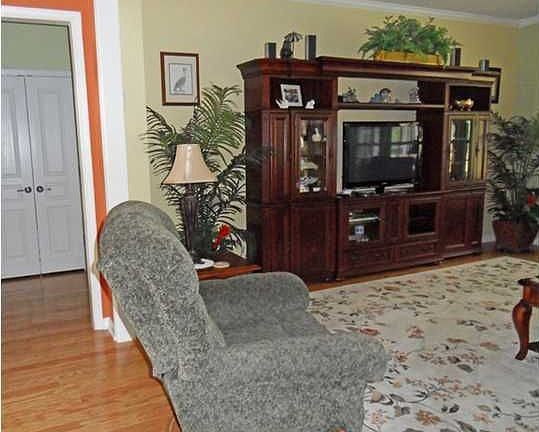 This beautiful,tastefully decorated home is sited on beautiful lot and has panorama views through the many windows. Owners have planted trees and added additional shrubery, cypress mulch and special yard treatments for added lushness and beauty. The front door opens to a large tile foyer leading into an open plan with gleaming hardwoods in living areas. Gracious family room has separate dining room plus an informal dining area opening to large screened porch. This spacious Bluffton plan has a split master with glamorous bath featuring both garden tub plus shower,two sinks, separate w/c and walk in closet. The big laundry room is near double garage for greater quiet and convenience.Kitchen is a cook's dream with stainless GE Profile appliances, granite counter tops and richly rubbed maple 42"cabinets. The second bedroom with bath is upfitted as a music room w/extra sound proofing. The library off foyer has a closet and can be a 3rd bedroom.The millwork is architectural quality and the Charleston paint colors are chosen for their serene feel. Del Webb has extensive facilities:in door and out door heated pools, tennis court,fitness center,bocce and pickle ball courts, activity director. All of this plus basic cable and lawn care incl in HOA dues.