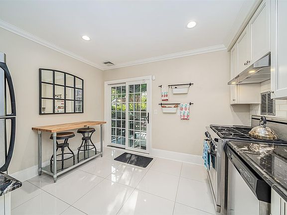 Price IMPROVEMENT. Landlord says RENT IT! Gorgeous spacious detailed duplex home in a 2 family with a large front porch. This charming home features 3 bedrooms, 1.5 baths with jacuzzi tub, 10ft ceilings, hardwood flooring throughout (newly refinished) decorative fireplace, crown molding, custom lighting. Newly renovated chefs kitchen with 6 burner professional Decor stove, granite counters, subway tiled backsplash, white tiled flooring and full stainless steel appliances. Enjoy your own private oasis maintenance free outdoor areas with a double brick laid patio and porch perfect for entertaining with summer BBQs. Parking in driveway can accommodate 4 cars. 2 zone central heat and A/C, Heat/hot water included. House has water filtration system and Laundry. Available Aug 1st. (use of garage is not included). Bus to NYC on corner 15 minute ride into Manhattan. Light rail 0.2 miles via Congress. Close to shops, restaurants, parks, supermarkets and transportation. Pictures from previous occupancy. Landlords will consider one small pet under 35lbs (or maybe one cat and one small dog)