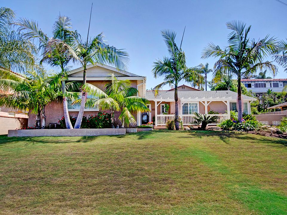 Beautiful Carlsbad location w/peekaboo ocean view. Newly remodeled Kitchen and Bathrooms. Master BR has walk in closet and Jacuzzi type bath. Lvn Rm. has gas Fire place. Tropical Landscape includes lawns and fruit trees. Auto sprinklers, built in gas BBQ. and outside fire place in backyard. Front yard deck and two car automatic garage door system, w/washer & dryer. Owner pays for weekly Landscape Services