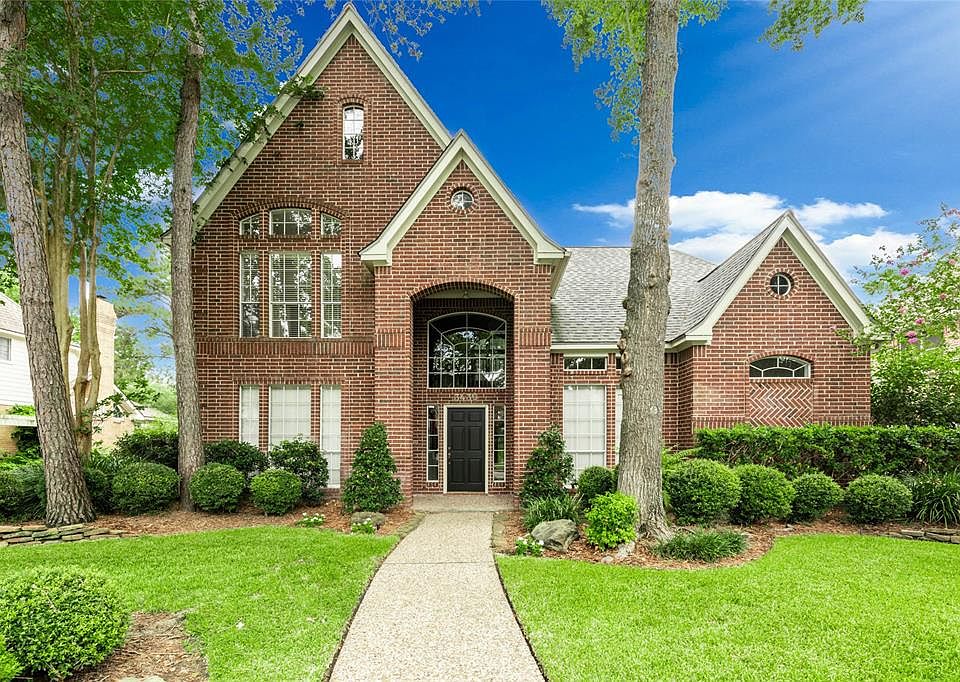 Come experience serenity in this charming custom home tucked away in The Thicket! 4 Bedrooms w study & custom built-ins, 3.5 baths. Conveniently located between Vintage Park & Market Street restaurants and shops, parks, subdivision pool & tennis courts. The family chef will enjoy cooking in this exquisite kitchen w double ovens while entertaining family & friends! The expansive living area boasts incredibly high ceilings creating a spacious place for relaxation while enjoying the private landscapes of the backyard patio, pool, waterfall & spa. Luscious tall trees & well manicured landscape trim this truly beautiful & well maintained home! Elegant wide plank hardwoods w crisp grey tones along w white trim and accents all throughout. These meticulous owners have provided special TLC to this well cared for home over many years of ownership. New roof in 2016, water heater replaced, fresh paint & carpet too! This home & surrounding streets have NEVER FLOODED. Staying home will be easy here!