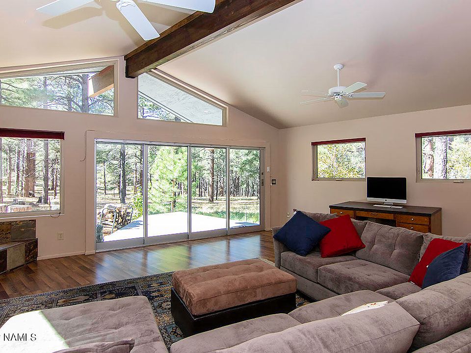 Tour this adorable home located in the picturesque community of Kachina Village, Flagstaff. The property backs up to national forest and you can literally walk out your back door to beautiful trails that lead through the forest or towards The Pumphouse Wash Trail. Sip your coffee, look beyond the crackling fireplace, into the forest. Listen to the wind blow through the trees and see a blanket of stars at night in this Dark Sky City. If this property had a name it would be Serenity. Every day you will be treated to an incredible view of the peaks as you pull out of the driveway. This home has a ''cabin in the woods'' feel with all of the conveniences of living in town. Home comes filled with warmth and love.