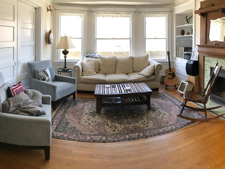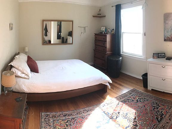 Freshly painted, upper unit with back porch, deck and laundry room in 2 unit building. Great old Victorian with high ceilings. 2 dedicated bedrooms with a den , dining room and living room with fireplace. One mile from McArthur Bart station. Shared yard - with POSSIBLE studio/storage space. Month to month to start. No utilities included. On street parking only. No pets allowed.