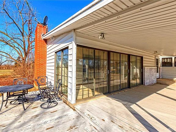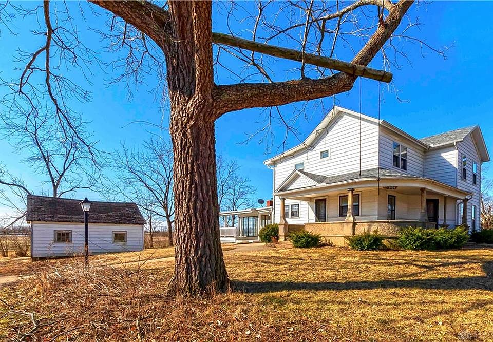 Great farmhouse on just under 4 acres!! If you love original hardwood flooring, ship lap and a wrap-around front porch, this is a must see!! Also includes large family room addition with fireplace insert, a sun room and nice covered back porch and deck to enjoy the summer breeze. Main floor full bath has been totally updated with marble shower and new vanity and toilet. Second floor bathroom is ready for new owners' special touch. Conveniently located to I-70 and I-75!! Large original barn built in 1890 included!