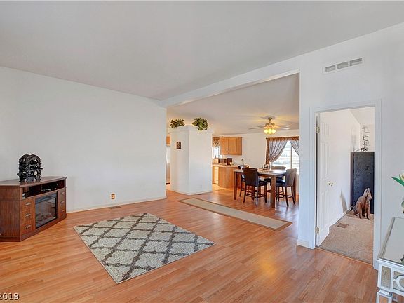 Wow really beautiful country home on 1.1 acres in lovely area. Home features 2 master suites, 2 full baths and 1 half, open floor plan with vaulted ceilings wood laminate and tile flooring. 2 car garage with breezeway/carport. Fully fenced and ready for move in. Enjoy views from front deck. Great for horses or toys or add other buildings. Has well and septic. Central location for commute to Vegas