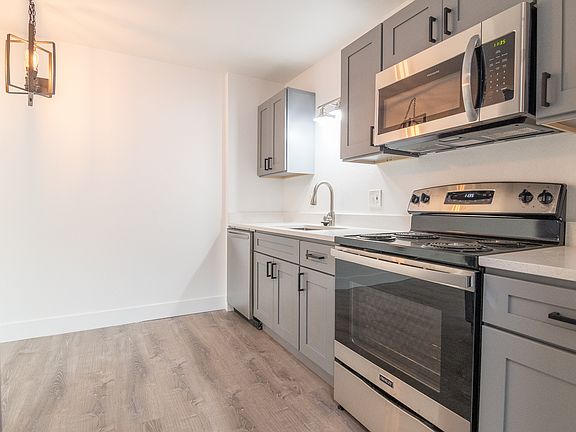 Apply today at NWVGroup. com! Virtual or no contact in person tours available. Application fee is a non-refundable $55 per adult applicant. Applicants are screened on a first come first serve basis. Remodeled and ready for new residents, this downtown Milwaukie apartment at Hidden Village is beautiful! Brand new flooring, finishes, appliances throughout. Spacious living with balcony access. Bright dining room with modern lighting. All new kitchen cabinetry and stainless steel appliances round out a gorgeous kitchen. Spacious bedroom with good closet space. Fully remodeled bathroom with double sinks. Large private balcony. Reserved off-street parking space. Awesome central location in Milwaukie, walk to restaurants, groceries, shopping, waterfront parks. Easy commuting to Portland. Call NWV Group today to schedule a showing! * Pictures of similar units ** Minimum 1 year lease, no smoking allowed, small dogs under 30lbs or cats allowed with $50/month pet rent and $250 deposit (up to two total pets allowed), tenants pay electric and are billed $50/month for water/sewer/garbage, 1 off-street parking space included with rent, $55 non-refundable screening fee per adult applicant