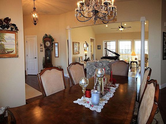 This unique offering was the builder's ''dream home.'' From the warm hued hardwood floors, to the granite embellished custom cabinetry, this home whispers quality throughout. The designer was meticulous with a comfortable study/den bathed in sunlight perfect for the home office. A split floor plan insures privacy with the master suite on one side and the 3 bedrooms with 2 baths on the other. For those that don't do stairs no worries, this floor plan is one level with no stairs..Enjoy the scenic Ozark's vistas from your 2 acre tract that is just a short 10 minute drive to Branson's shopping and entertainment. Like to fish? 3 top rated fishing lakes are a short drive and with a 3 car garage, storing a boat is not a problem. Call Shane Grady, listing agent, toll-free 1-866-879-6961.