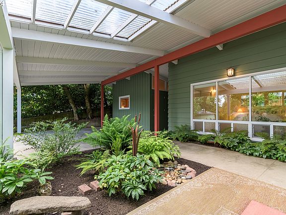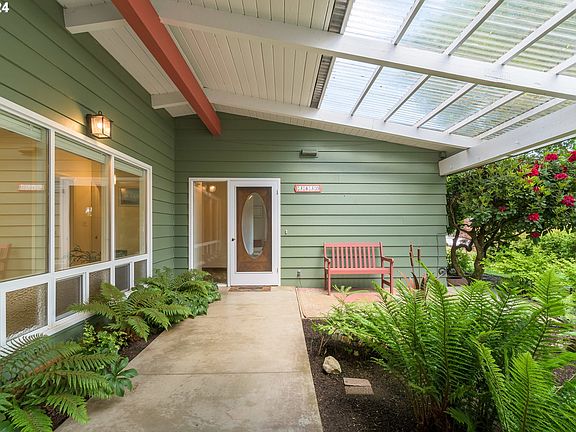 Open house Wed 5/22 from 5-7pm! It is not very often that a home can accurately be described as "truly one of a kind" and then 3430 View Lane comes along! Don't miss this mid-century masterpiece on 1/3 acre of park-like grounds, expansive city views, almost 1400 sf in the main house, a 1 bedroom detached apartment and a 300+ sf shop in back. With a single story design, vaulted wood-beam living & dining room, walls of windows, gas fireplace, updated kitchen & baths, 2 possible primary ensuites plus office and radiant floor heat throughout, the light-filled main home is functional and comfortable. Across the covered front courtyard with water feature you'll find a 1 bedroom apartment that is perfect for guest quarters and/or multi-generational living. In the extremely private and fully fenced backyard you will love the traditional Finnish sauna (Finlandia brand), covered back patio, multiple secret gardens and walkways, lush landscaping with award-winning rhododendrons and azaleas, underground sprinklers, plus the detached heated shop with garden window and 2 bays of covered storage. Ample parking in 2-car carport & driveway for multiple vehicles & impeccably maintained (inspection on file). Features many system upgrades including tankless gas water heater, dual pane vinyl windows with Hunter Douglas blinds throughout & membrane roof with extra insulation installed about 7 yrs ago. And the location...wow! With the feeling of being in your own magical park on a secluded lane that feeds to SEHS but only .3 mile to Wayne Morse Ranch and 1.2 miles to Woodfield Station, you really have the best of both worlds. Call your agent today to view one of the sweetest properties that Eugene has to offer.