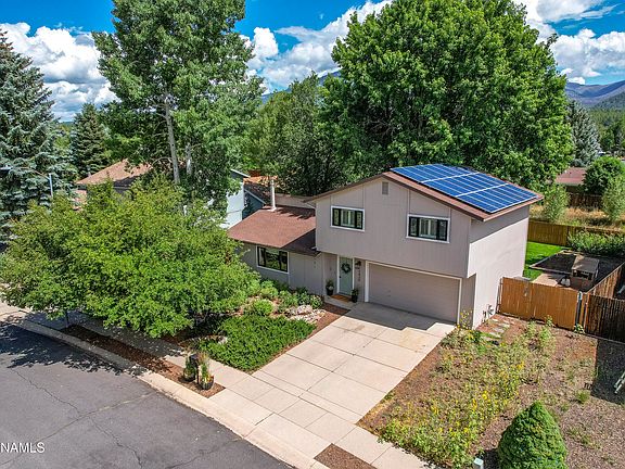 Beautifully updated home in Flagstaff's desirable Cheshire neighborhood! This move-in-ready property features updated interior paint, new baseboards and doors, and laminate flooring throughout the main living areas and bedrooms. The kitchen was fully remodeled in 2019 with custom cabinets, granite counters, and subway tile backsplash. Enjoy energy efficiency with owned solar panels, a tankless water heater, and roof heat tape. The exterior shines with fresh paint, mature landscaping, irrigation, and a south-facing driveway. Home backs the Rio de Flag with gate access. Bonus: a raspberry patch and peach tree in the backyard! Located near FUTS, the Cheshire park, tennis courts, and just minutes from downtown, and Arizona Snowbowl. Schedule your private showing today!