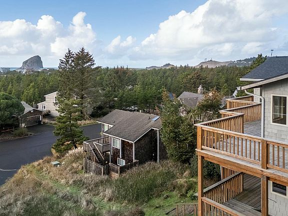Sweeping double views from Big River Court in Pacific City, OR! This 3-bedroom, 2-bathroom home offers the perfect blend of comfort and coastal charm. Short term rental eligible with NO waitlist. Situated on an elevated lot, in desirable Nestucca Ridge. Featuring wraparound decks with breathtaking views of the Pacific Ocean and the Nestucca River, providing the ideal backdrop for relaxation or entertaining. Inside, the home boasts neutral finishes and a spacious layout with ample storage. The living areas are filled with natural light, and the thoughtful design ensures comfort and functionality. Whether you're savoring the serene ocean breeze on the deck or exploring nearby beaches and local attractions, this home provides an exceptional opportunity to enjoy the Pacific City lifestyle.