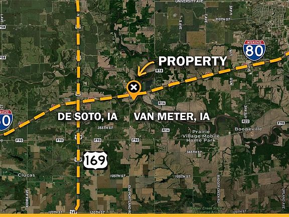 Welcome to a rare opportunity in Van Meter, Iowa! This expansive property offers an array of features that will appeal to developers, investors, and outdoor enthusiasts alike.Situated along Old Portland Rd adjacent to I-80, this property presents exceptional development potential. With easy access to DSM, the location is ideal for those seeking a country lifestyle close to conveniences of the city. Spanning nearly 3500 ft of scenic Raccoon River frontage, the property boasts endless recreational opportunities. Thick timber along the river provides excellent hunting potential, making it a haven for wildlife enthusiasts desiring private hunting opportunities. These features also serve as an unmatched future greenspace area for development. A newly constructed pond on the N of the property adds to the charm & functionality of this versatile property as well. The income provided from cash renting the alfalfa field is a nice bonus that helps pay the annual taxes on the property. This could easily be converted to additional wildlife habitat through CRP practices, or placed in row crops should the new owner desire to increase the income potential. Whether you’re envisioning a development project, seeking a prime recreational retreat, a place to build your future dream home, or looking to capitalize on a long term investment, this property is a rare find. Don’t miss out on this unique offering in Van Meter, Iowa.