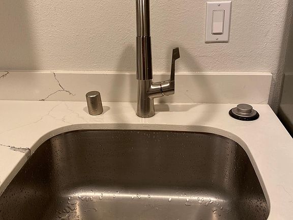 * Updated kitchen and bathroom with open floor plan, bar with eating space in the kitchen, quartz counter tops, and stainless steel appliances (smooth top range, built-in microwave with hood, super-quiet dishwasher, stainless steel kitchen sink with garbage disposal and pullout faucet)
