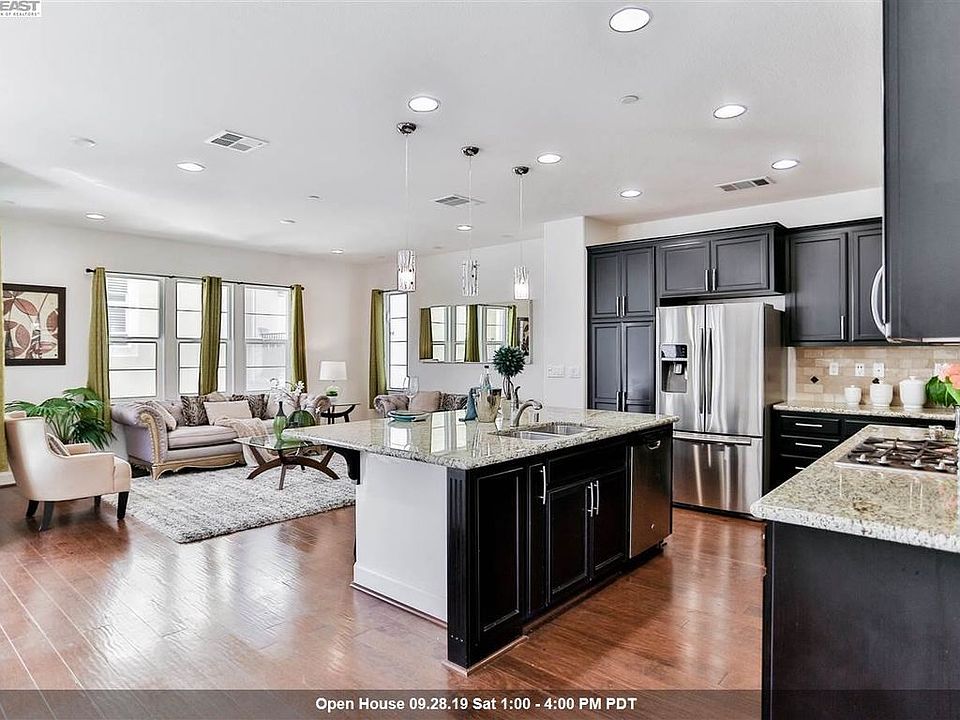 North facing single-family home in Sorrento neighborhood at Dublin Ranch. 3 bedrooms plus office/optional 4th bedroom. Spacious and stunning great room concept with hardwood floors, combined kitchen, living & dining that is perfect for entertaining family and friends! Large island in the kitchen with breakfast bar, Pendant lights, gas cook-top, Stainless Steel appliances, quartz countertop with full back splash. Brand new carpet. 1 bdrm 1 full bath downstairs, perfect for visitors or parents. Soaring 10 ft. ceilings create a spacious elegant flow throughout the home. Serene views of the foothills from the den/office room and 3rd bedroom. All 3 bedrooms have an en-suite & walk-in closet. Located within walking distance to elementary & middle school,Dublin sports park,Dublin water park, shopping & entertainment. Conveniently located near 580/680 freeway & BART. HOA includes pool, spa, gym, Bocce ball, BBQ grill, Club House, Lounge room etc. Open House Sat 28th & Sun 29th from 1pm to 4pm