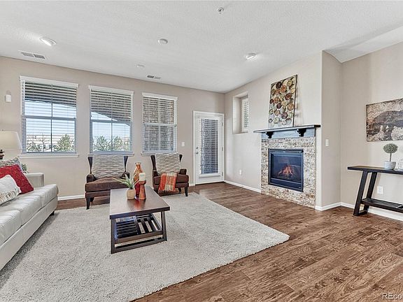 Ground Level low maintenance condominium in upscale Tresana neighborhood with partially covered Extended Patio and gorgeous Mountain Views! LOCATION*LOCATION*LOCATION*Builders often save their best lots for last. This unit was built in the final phase & will not disappoint! Rare 3 bedroom 2 bath *No Stairs* Open Floor Plan *Engineered wood flooring flows from entry, throughout open Dining Space, Kitchen and Great Room. Upgraded designer kitchen boasts 42 inch cabinets, crown molding and mullion glass. Tastefully finished with Slab Granite Countertops, Updated Tile Backsplash and Stainless Steel Appliances. Spacious Great Room has large windows to patio and Mountain Views and Gas Fireplace with Tile Surround. Primary Suite includes a 5 piece bath, Tile Floor, Tile detailed soaker tub and shower, dual vanity sinks and a large walk in closet! Bedroom 2 and 3 share a full bath. Bedroom 3 makes a great den, reading room, study or bedroom. Washer and Dryer is included and in the home. HOA takes care of exterior maintenance including snow removal. Tresana Homeowners enjoy the Tuscan inspired hillside of walking paths offering majestic mountain views, walking trails on open space, & an outdoor pool, hot tub and piazza in the summer. Homeowners also enjoy having access to 4 State of the Art Highlands Ranch Recreation Centers. Tresana boasts many social clubs, HOA sponsored summer events, walking distance to Parks, Whole Foods, Restaurants, Banks, Fitness, Pharmacies and allows easy access to Highlands Ranch Town Center and C-470! Start Living the Good Life Today!