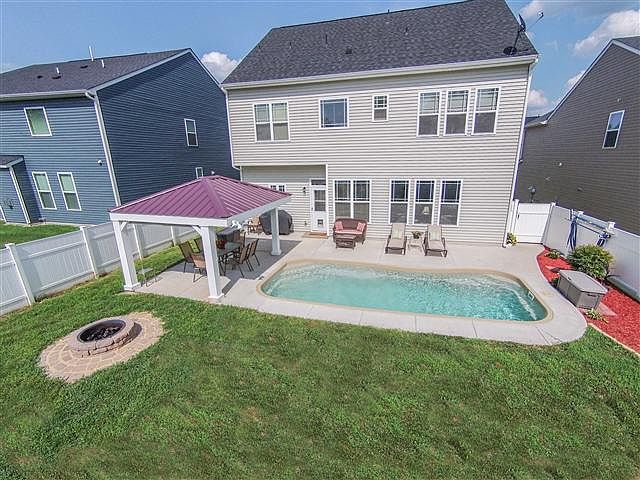 Gorgeous home with fabulous private in-ground pool and gazebo. Detached storage shed and fenced backyard. 9' and 10' ceilings. Formal dining room with crown moulding and wainscoting. Dual staircase and gorgeous hardwoods. Family room with gas log fireplace and view of the pool. Adjoining kitchen offers granite counter tops, center island, gas cook top, and breakfast area. Large master bedroom has trey ceiling, private bath with dual vanities, garden tub, separate shower and walk-in closet. Hu...
