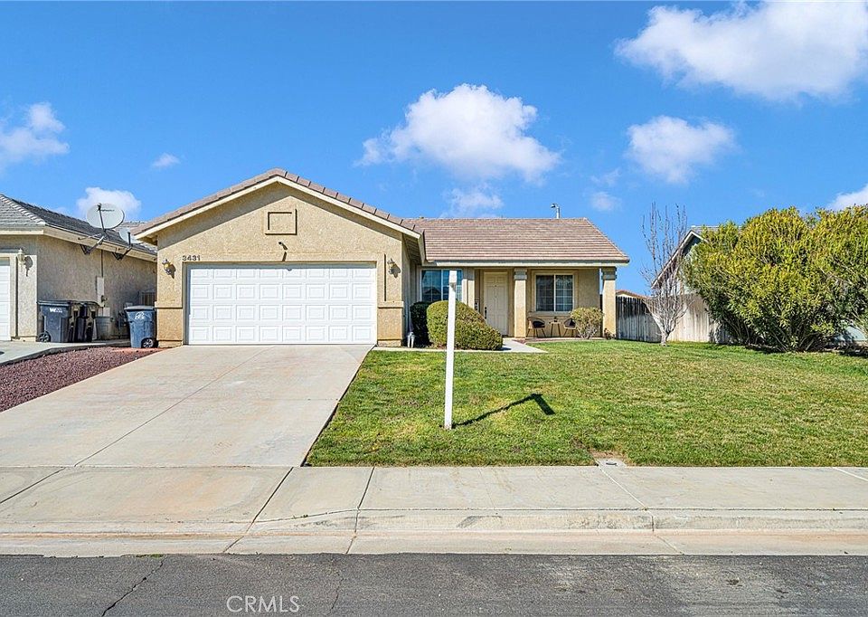 Welcome to a home that is very inviting in appearance and welcoming to all who enter! As a single story home, the layout is convenient and accessible to all rooms. Modern fixtures, new recessed lighting, new interior paint and bamboo flooring emphasize a warm contemporary feel for any homeowner. Each bedroom has an abundance of natural light, and are spacious in size. The primary bedroom is ample in size and offers space for a king-size bed and other furniture. The closet space is large and has custom built in cabinetry to help with organization. The heart of the home is the kitchen, with its oversized and expansive kitchen island. This serves not only as a beautiful focal point, but also offers prep space and countertop seating for guests. The kitchen has stainless steel appliances and not one but two dining options to choose from. The main living area layout has a semi-vaulted ceiling, centered around a cozy fireplace and is open to the kitchen. The seamless transition from indoor to outdoor living is facilitated by a large sliding glass door which leads to a private patio and backyard, making it perfect for entertaining. Backyard landscape is low-maintenance and adds extreme appeal to the home, while the front of the home has an oversized driveway that provides more parking and allows for direct garage access. Situated close to HWY 14, provides easy access to Palmdale, Lancaster and only a short distance to drive to Los Angeles. Edwards Air Force Base and Mojave Air and Space port. Located in Antelope Valley, Rosamond provides beautiful scenic views of desert landscape. FH/VA OK! **Professional photos coming soon**