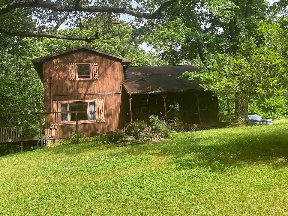 This home in Wadesville offers a very quiet country setting with lots of privacy. You can sit on the large deck that wraps around the home and watch the deer's and wild turkeys as they roam through the woods. The original home was believed to be a small one or two room cabin which has been enlarged at least a couple of times over the years. The Kitchen & Dining areas make up what could best be described as a large kitchen & hearth room with a Vaulted ceiling. The family room features a wood burning stove as well as access to a small 9 x 14 room which would make a nice office. Also on the main level is a large bedroom and a full bath. As you head upstairs you will find 3 more bedrooms plus a large storage room and a large split full bath. The basement is not actually finished as living space it has been used as a workshop & storage area for many years and it does have a patio door that opens to the back yard. The home also offers a 40' X 24' detached garage with a walkup floored loft area and there is a 10' X 14' out building next to the Garage. The home was not occupied for several months until just recently. The Owner is in the process of moving the personal property from the basement out to the detached Garage and he is asking to retain possession of the garage for up to 45 days after closing Possession of the home can be immediate at closing. This home has been priced in as-is condition.