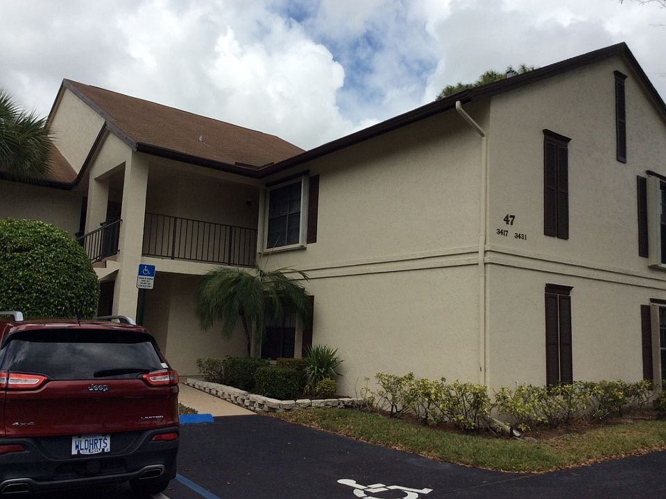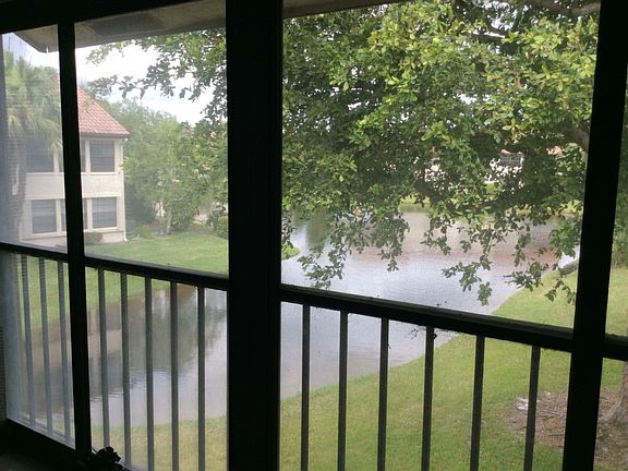 Gorgeous 2nd floor corner condo with 2 bedrooms, and 2 full bathrooms. Eat-in kitchen, stainless steel appliances. Huge, screened Florida room overlooking a pretty lake. Master suite with wood flooring includes a renovated bathroom with white vanity and granite counter and a large walk-in closet. The rest of the unit has tile floors. Separate laundry room with full-size washer and dryer. Comple Accordion Shutters.The seller just paid the assessment for a new roof that will be installed on the building. Sold As-Is. Located in Park Pointe, a 55+ community with clubhouse, pool, tennis, pickleball. One pet less than 25 lbs welcome!