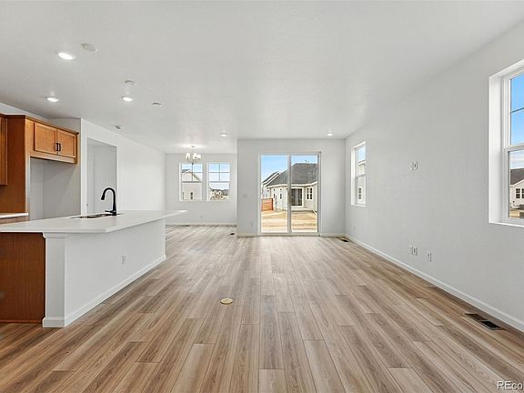 MLS#9663202 Ready Now! Welcome to low-maintenance, single-level living in the Rocky Mountain design, a new construction built at Aurora Highlands. This paired floor plan greets you with a spacious foyer that flows into the kitchen, great room, and dining area, providing ample space for entertaining loved ones. The home also features a convenient laundry room with space for optional cabinets and a sink, as well as an additional bedroom and full bath at the front. When it's time to unwind, the private primary suite offers a spacious retreat with a 4-piece bath and a large walk-in closet. Structural Options Added Include: Gourmet Kitchen and Patio