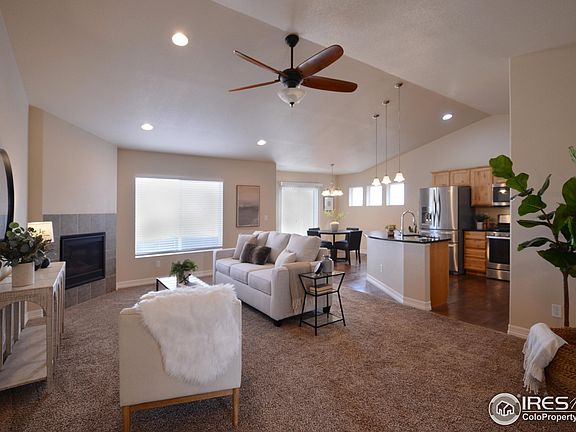 Enjoy comfortable living in this stylish ranch style home! It sits on a beautiful lot adjacent to community open space and boasts wonderful views of the mountains from the patio. The bright and open main floor plan features a great room with cozy gas fireplace, kitchen with large island, main level laundry room a primary suite with private 5-piece bath plus 2 additional bedrooms. A fully finished basement provides another living area plus 2 more bedrooms and a full bath. Outdoors you'll appreciate the professionally landscaped front and back yard that has been fully fenced yard and relaxing in the hot tub. The neighborhood pool and walking path is an added bonus! Move right in and enjoy.