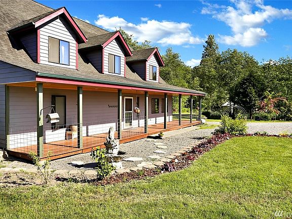Quiet country living on 5 acres, in a secluded yet sunny location, only 5 minutes to I-5. Spacious home with a classic wrap around covered porch to enjoy the outdoors year round. Main floor master, 2 more large bedrooms + bonus room. Efficient radiant floor heating on main level & granite slab counters + commercial grade stainless appliances. Property has over 3 acres fully fenced, then treed in back bordering Friday Creek. Detached shop w/power. Get the space you want, inside and out.