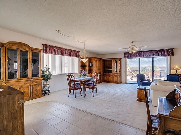 FANTASTIC BACK MOUNTAIN VIEWS! You'll enjoy sitting on your private back patio watching the mountains turn pink! This fully furnished home is ready to occupy. 2 large bedrooms plus den or TV room. The guest bedroom has a built in murphy bed and cabinets. Beautiful tile and carpeted floors. Great location close to recreation centers and golf. Termite warranty and HVAC maintenance contract. Just relax!
