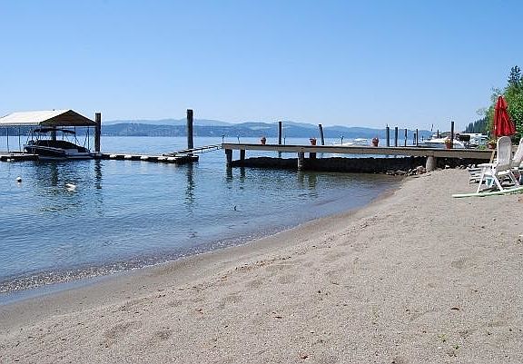 Southern exposure, sandy beach, mins to downtown CDA. Completely remodeled in 2000 & had a face lift in 2016 including new roof. This .61 acre, 100 ft waterfront main house has over 3800 sq ft with vaulted wood ceilings, granite, tile & hardwood floors. Over 1000 ft of cedar decking, landscaped, lawn, garden. Stunning lake views from every room Sun deck. Shop guest apartment has kitchen, laminate floors, wood stove. 1 bdrm, 1 bath, lg gathering rm, shop/hobby studio. Attached heated 2 car garage.